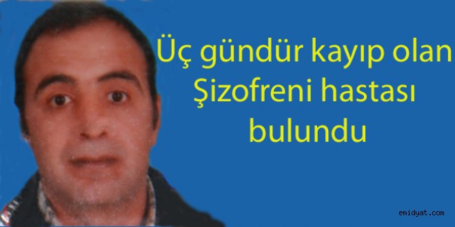 Üç gündür kayıp olan Şizofreni hastası bulundu.